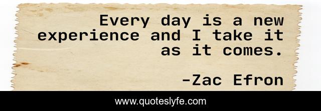 This page presents the quote "Every day is a new experience and I take it as it comes.". Author of this quote is Zac Efron. This quote is about new, every day, day,.