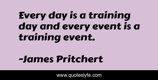 This page presents the quote "Every day is a training day and every event is a training event.". Author of this quote is James Pritchert. This quote is about development, professional, training, human-resources, business,.