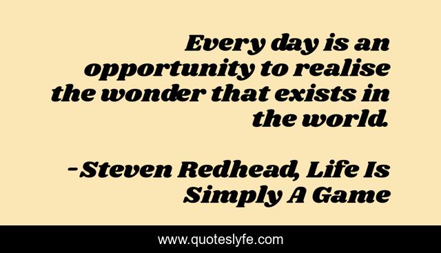 This page presents the quote "Every day is an opportunity to realise the wonder that exists in the world.". Author of this quote is Steven Redhead, Life Is Simply A Game. This quote is about world, opportunity, exists, realise, wonder,.