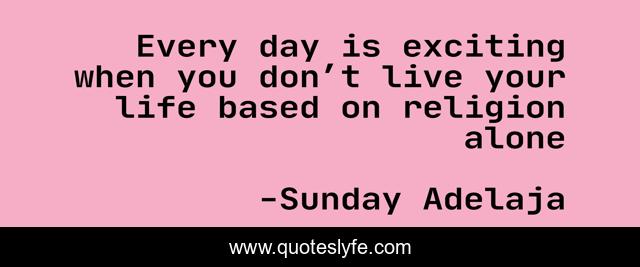 This page presents the quote "Every day is exciting when you don’t live your life based on religion alone". Author of this quote is Sunday Adelaja. This quote is about life, blessing, finance, reason-to-live, money, work, daily-excitement, religion, job,.