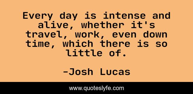This page presents the quote "Every day is intense and alive, whether it's travel, work, even down time, which there is so little of.". Author of this quote is Josh Lucas. This quote is about work, day, time,.