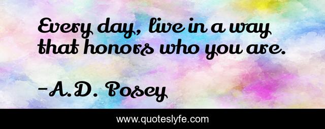 This page presents the quote "Every day, live in a way that honors who you are.". Author of this quote is A.D. Posey. This quote is about writers-inspiration, love, laugh, spiritual-wisdom, every-day, peace, spirituality, live, writers,.