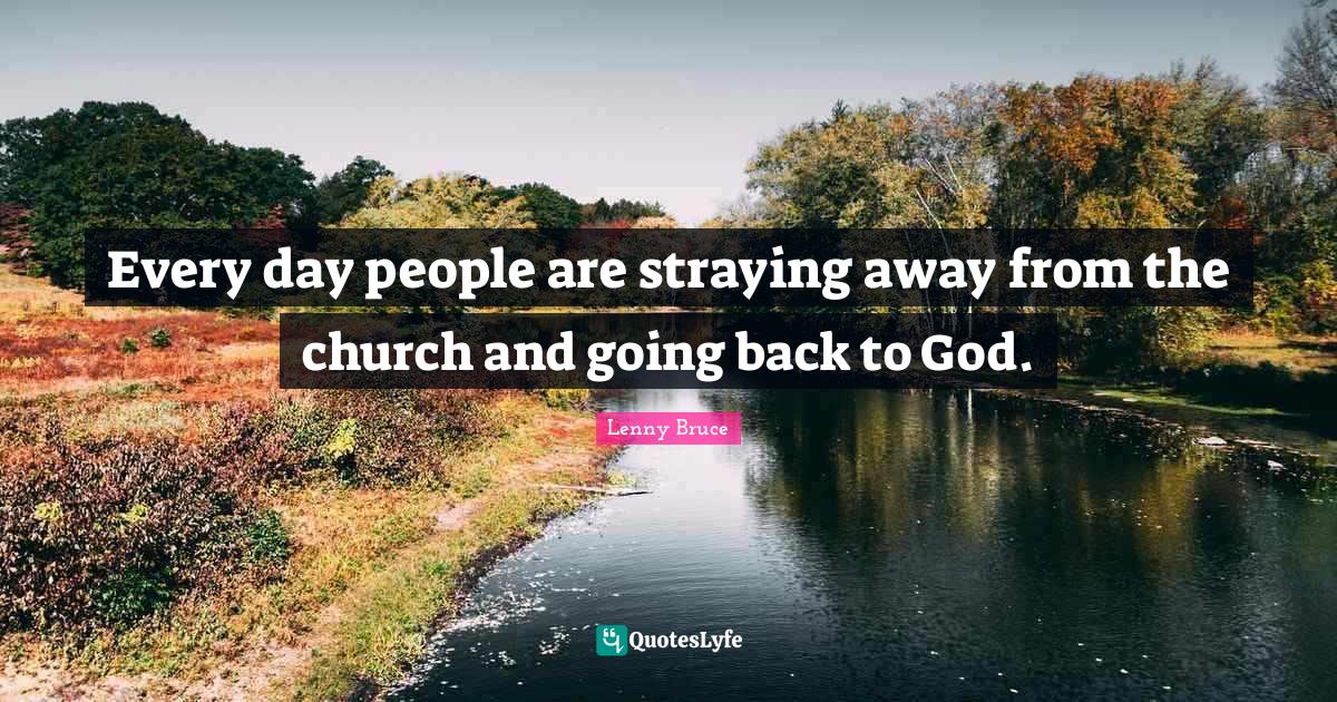 This page presents the quote "Every day people are straying away from the church and going back to God.". Author of this quote is Lenny Bruce. This quote is about god, jesus, organized-religion, religion,.