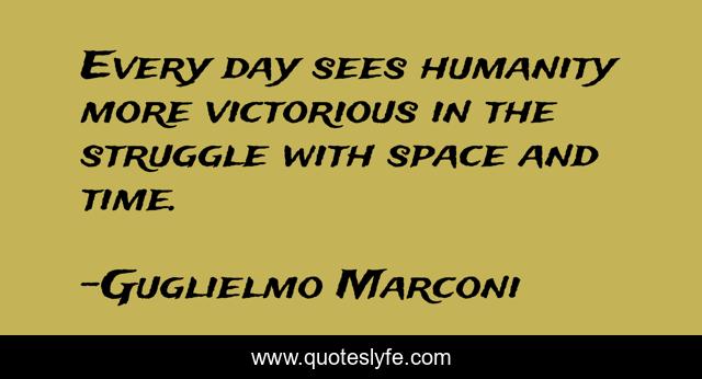 This page presents the quote "Every day sees humanity more victorious in the struggle with space and time.". Author of this quote is Guglielmo Marconi. This quote is about time, struggle, day,.