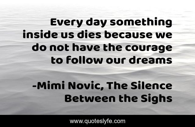 This page presents the quote "Every day something inside us dies because we do not have the courage to follow our dreams". Author of this quote is Mimi Novic, The Silence Between the Sighs. This quote is about live-your-best-life, courage-fear-inspirational, life-lessons, hopeful-and-encouraging, dreams-inspirational, regrets,.