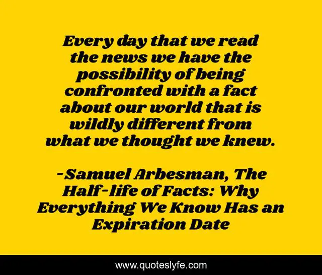 "Samuel Arbesman, The Half-life of Facts: Why Everything We Know Has an Expiration Date Quotes." Quoteslyfe.com, 2025. Fri. 05 Dec. 2025. <https://www.quoteslyfe.com/quote/Every-day-that-we-read-the-news-254582>.