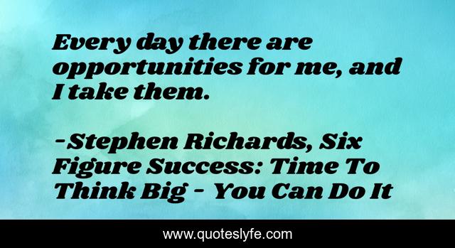"Stephen Richards, Six Figure Success: Time To Think Big - You Can Do It Quotes." Quoteslyfe.com, 2025. Fri. 05 Dec. 2025. <https://www.quoteslyfe.com/quote/Every-day-there-are-opportunities-for-me-78103>.