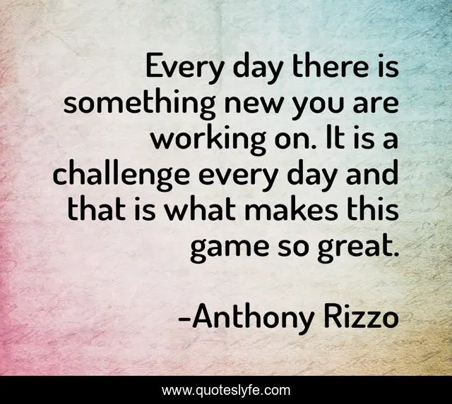 This page presents the quote "Every day there is something new you are working on. It is a challenge every day and that is what makes this game so great.". Author of this quote is Anthony Rizzo. This quote is about challenge, game, day,.