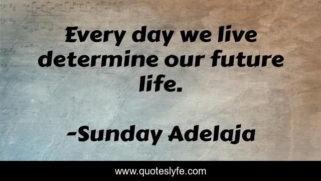 This page presents the quote "Every day we live determine our future life.". Author of this quote is Sunday Adelaja. .
