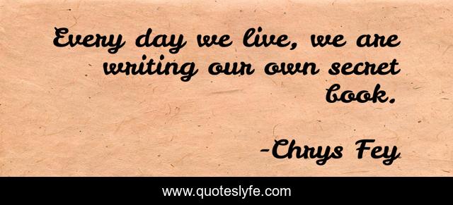 This page presents the quote "Every day we live, we are writing our own secret book.". Author of this quote is Chrys Fey. This quote is about life-philosophy, writing-philosophy, writing-life,.