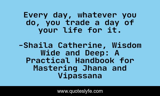 "Shaila Catherine, Wisdom Wide and Deep: A Practical Handbook for Mastering Jhana and Vipassana Quotes." Quoteslyfe.com, 2025. Sat. 06 Dec. 2025. <https://www.quoteslyfe.com/quote/Every-day-whatever-you-do-you-trade-118026>.