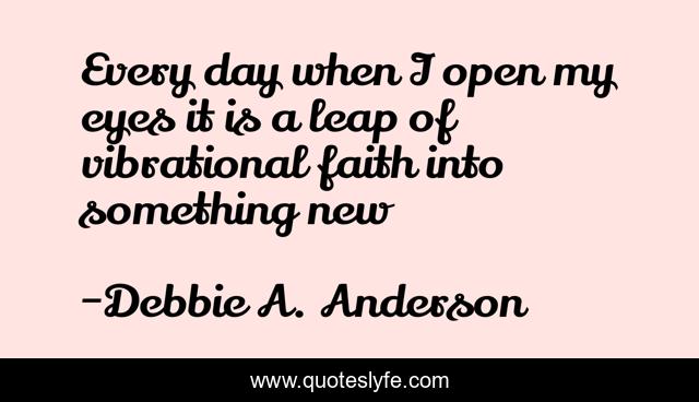 This page presents the quote "Every day when I open my eyes it is a leap of vibrational faith into something new". Author of this quote is Debbie A. Anderson. This quote is about faith, spiritual, belief,.