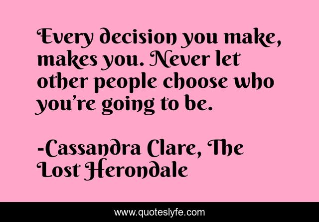 "Cassandra Clare, The Lost Herondale Quotes." Quoteslyfe.com, 2025. Fri. 05 Dec. 2025. <https://www.quoteslyfe.com/quote/Every-decision-you-make-makes-you-Never-255377>.