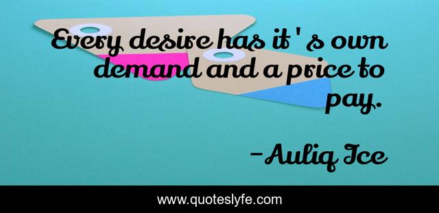 This page presents the quote "Every desire has it's own demand and a price to pay.". Author of this quote is Auliq Ice. .
