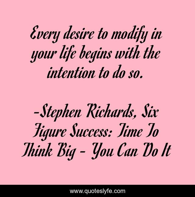 "Stephen Richards, Six Figure Success: Time To Think Big - You Can Do It Quotes." Quoteslyfe.com, 2025. Fri. 05 Dec. 2025. <https://www.quoteslyfe.com/quote/Every-desire-to-modify-in-your-life-216469>.