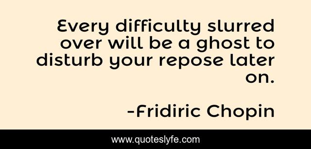 This page presents the quote "Every difficulty slurred over will be a ghost to disturb your repose later on.". Author of this quote is Fridiric Chopin. .