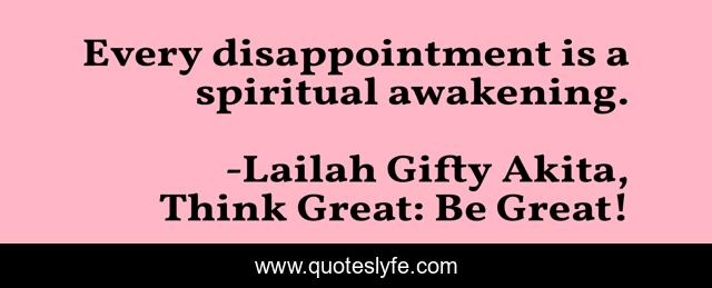 "Lailah Gifty Akita, Think Great: Be Great! Quotes." Quoteslyfe.com, 2025. Tue. 09 Dec. 2025. <https://www.quoteslyfe.com/quote/Every-disappointment-is-a-spiritual-awakening-124093>.