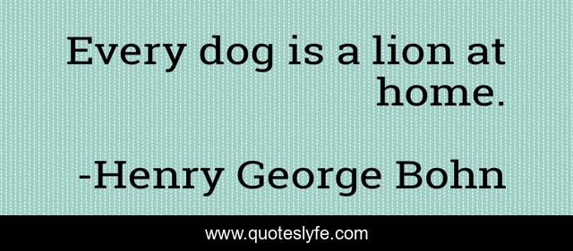 This page presents the quote "Every dog is a lion at home.". Author of this quote is Henry George Bohn. This quote is about lion, dog,.
