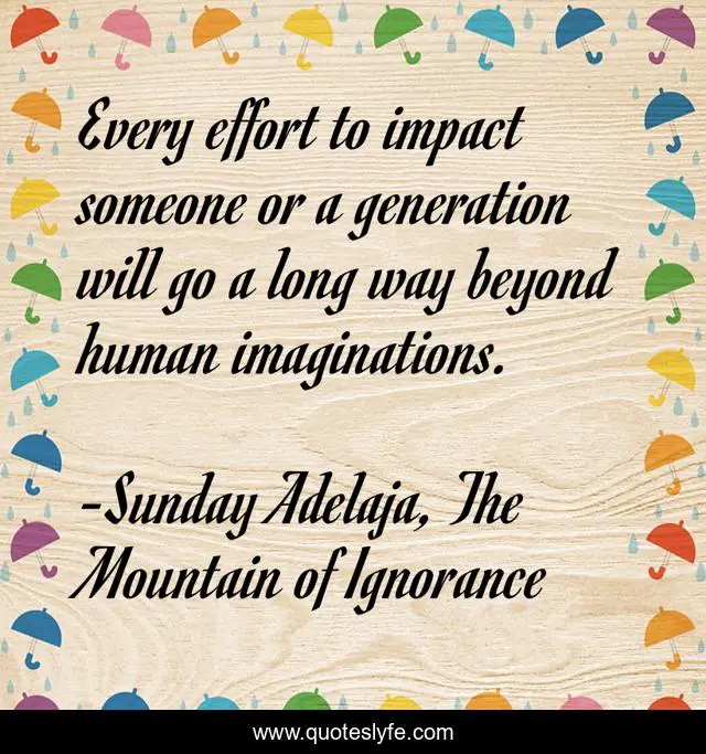 "Sunday Adelaja, The Mountain of Ignorance Quotes." Quoteslyfe.com, 2025. Sun. 07 Dec. 2025. <https://www.quoteslyfe.com/quote/Every-effort-to-impact-someone-or-a-30862>.