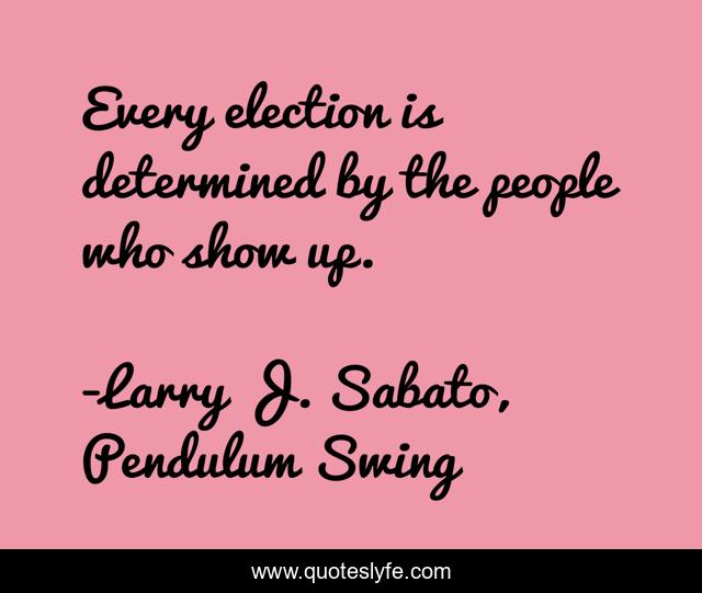 "Larry J. Sabato, Pendulum Swing Quotes." Quoteslyfe.com, 2025. Tue. 09 Dec. 2025. <https://www.quoteslyfe.com/quote/Every-election-is-determined-by-the-people-54325>.