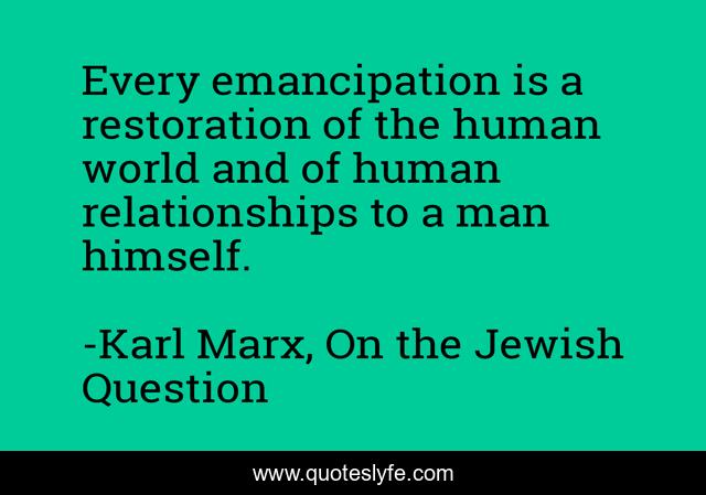 "Karl Marx, On the Jewish Question Quotes." Quoteslyfe.com, 2025. Sun. 07 Dec. 2025. <https://www.quoteslyfe.com/quote/Every-emancipation-is-a-restoration-of-the-244002>.