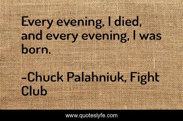 "Chuck Palahniuk, Fight Club Quotes." Quoteslyfe.com, 2025. Fri. 05 Dec. 2025. <https://www.quoteslyfe.com/quote/Every-evening-I-died-and-every-evening-22022>.