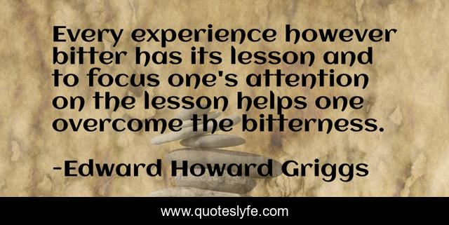 This page presents the quote "Every experience however bitter has its lesson and to focus one's attention on the lesson helps one overcome the bitterness.". Author of this quote is Edward Howard Griggs. .