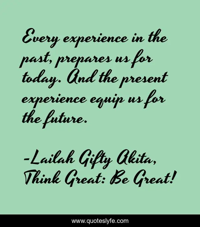 "Lailah Gifty Akita, Think Great: Be Great! Quotes." Quoteslyfe.com, 2025. Tue. 09 Dec. 2025. <https://www.quoteslyfe.com/quote/Every-experience-in-the-past-prepares-us-78261>.