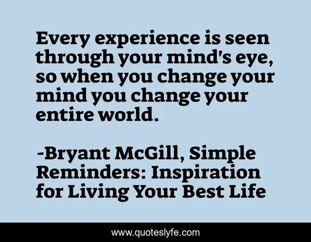 "Bryant McGill, Simple Reminders: Inspiration for Living Your Best Life Quotes." Quoteslyfe.com, 2025. Fri. 05 Dec. 2025. <https://www.quoteslyfe.com/quote/Every-experience-is-seen-through-your-mind-158804>.