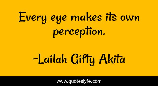 This page presents the quote "Every eye makes its own perception.". Author of this quote is Lailah Gifty Akita. This quote is about life, eye, observation, nature, wisdom, positive-thinking, inspiration,.