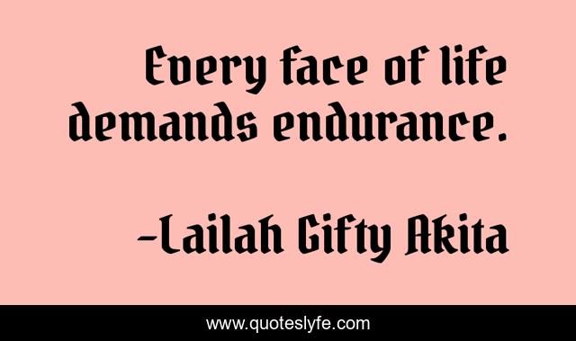 "Lailah Gifty Akita Quotes." Quoteslyfe.com, 2025. Mon. 08 Dec. 2025. <https://www.quoteslyfe.com/quote/Every-face-of-life-demands-endurance-185619>.