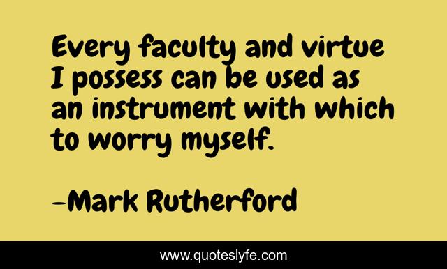 This page presents the quote "Every faculty and virtue I possess can be used as an instrument with which to worry myself.". Author of this quote is Mark Rutherford. .