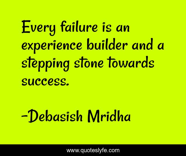 This page presents the quote "Every failure is an experience builder and a stepping stone towards success.". Author of this quote is Debasish Mridha. This quote is about miraboli, success, oscar-wilde, philosophy, debasish-mridha, failure, quotes, debasish-mridha-md, inspirational,.