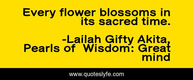 "Lailah Gifty Akita, Pearls of Wisdom: Great mind Quotes." Quoteslyfe.com, 2025. Sat. 06 Dec. 2025. <https://www.quoteslyfe.com/quote/Every-flower-blossoms-in-its-sacred-time-72958>.
