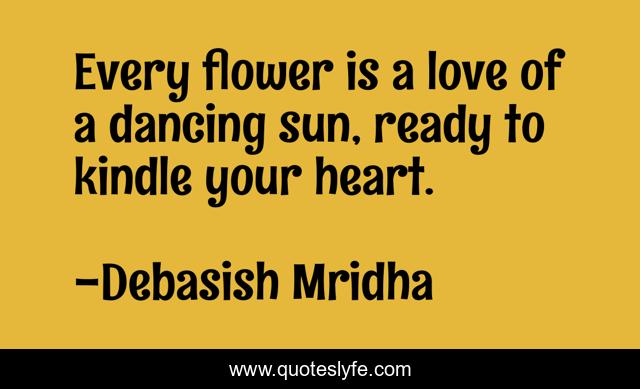 This page presents the quote "Every flower is a love of a dancing sun, ready to kindle your heart.". Author of this quote is Debasish Mridha. This quote is about life, love, knowledge, inspirational, intelligence, philosophy, wisdom, quotes, affection,.