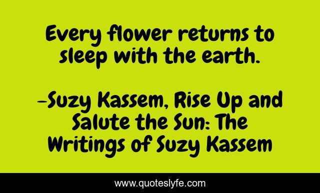 "Suzy Kassem, Rise Up and Salute the Sun: The Writings of Suzy Kassem Quotes." Quoteslyfe.com, 2025. Mon. 08 Dec. 2025. <https://www.quoteslyfe.com/quote/Every-flower-returns-to-sleep-with-the-192568>.