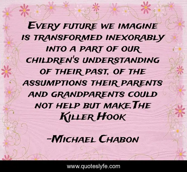 This page presents the quote "Every future we imagine is transformed inexorably into a part of our children's understanding of their past, of the assumptions their parents and grandparents could not help but make.The Killer Hook". Author of this quote is Michael Chabon. .