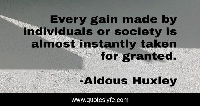 This page presents the quote "Every gain made by individuals or society is almost instantly taken for granted.". Author of this quote is Aldous Huxley. .