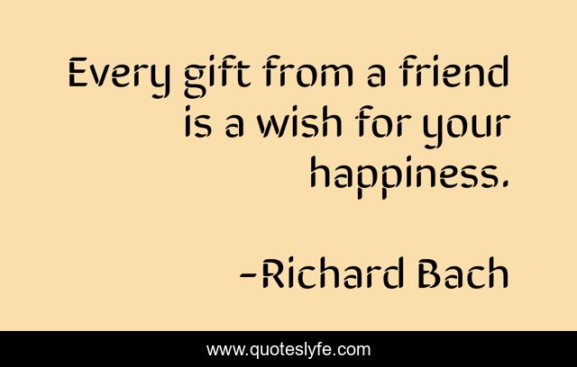 This page presents the quote "Every gift from a friend is a wish for your happiness.". Author of this quote is Richard Bach. This quote is about wish, friend, gift,.