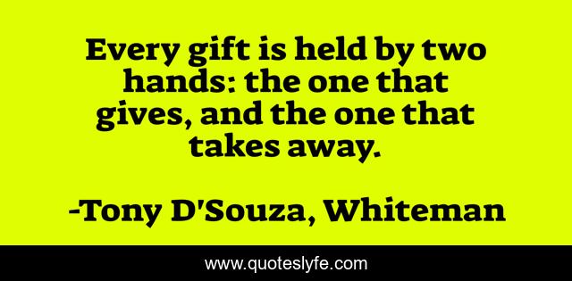 "Tony D'Souza, Whiteman Quotes." Quoteslyfe.com, 2026. Tue. 13 Jan. 2026. <https://www.quoteslyfe.com/quote/Every-gift-is-held-by-two-hands-236710>.
