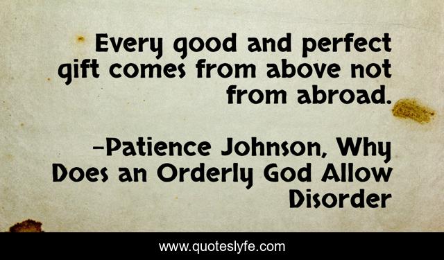 "Patience Johnson, Why Does an Orderly God Allow Disorder Quotes." Quoteslyfe.com, 2025. Tue. 09 Dec. 2025. <https://www.quoteslyfe.com/quote/Every-good-and-perfect-gift-comes-from-83439>.