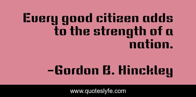 This page presents the quote "Every good citizen adds to the strength of a nation.". Author of this quote is Gordon B. Hinckley. This quote is about citizen, good, nation,.