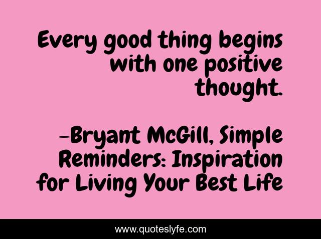 "Bryant McGill, Simple Reminders: Inspiration for Living Your Best Life Quotes." Quoteslyfe.com, 2025. Fri. 05 Dec. 2025. <https://www.quoteslyfe.com/quote/Every-good-thing-begins-with-one-positive-138123>.