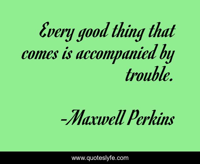This page presents the quote "Every good thing that comes is accompanied by trouble.". Author of this quote is Maxwell Perkins. This quote is about enjoyment, pleasure,.