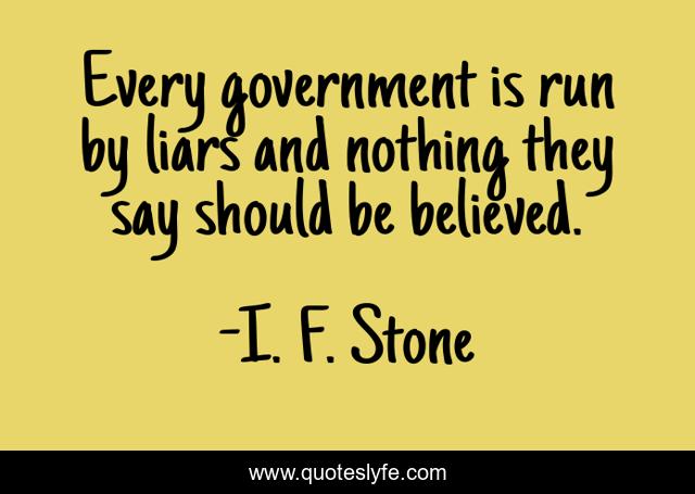 "I. F. Stone Quotes." Quoteslyfe.com, 2025. Mon. 08 Dec. 2025. <https://www.quoteslyfe.com/quote/Every-government-is-run-by-liars-and-266963>.