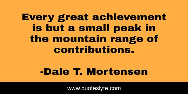 This page presents the quote "Every great achievement is but a small peak in the mountain range of contributions.". Author of this quote is Dale T. Mortensen. This quote is about small, mountain, achievement,.