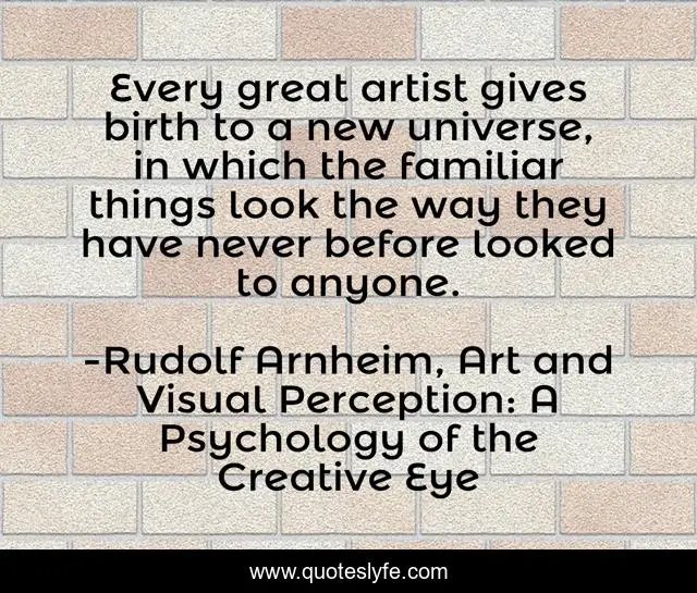 "Rudolf Arnheim, Art and Visual Perception: A Psychology of the Creative Eye Quotes." Quoteslyfe.com, 2025. Mon. 08 Dec. 2025. <https://www.quoteslyfe.com/quote/Every-great-artist-gives-birth-to-a-108256>.