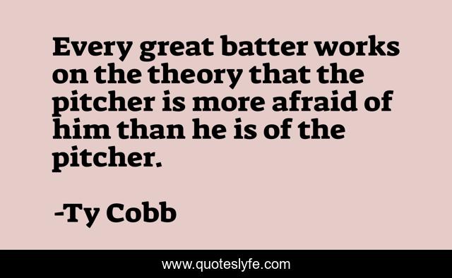 This page presents the quote "Every great batter works on the theory that the pitcher is more afraid of him than he is of the pitcher.". Author of this quote is Ty Cobb. This quote is about success, happiness,.