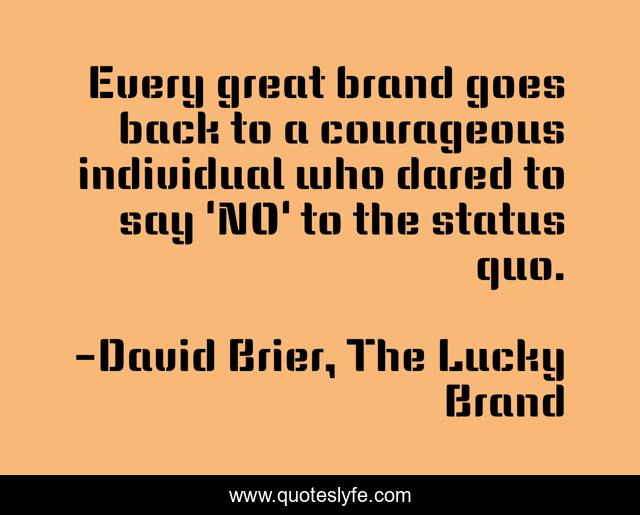 This page presents the quote "Every great brand goes back to a courageous individual who dared to say 'NO' to the status quo.". Author of this quote is David Brier, The Lucky Brand. This quote is about branding-culture, branding-expert, business, branding-marketing, branding, brand, success, strategy, david-brier,.