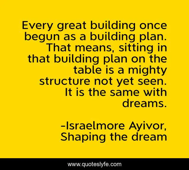 "Israelmore Ayivor, Shaping the dream Quotes." Quoteslyfe.com, 2025. Fri. 05 Dec. 2025. <https://www.quoteslyfe.com/quote/Every-great-building-once-begun-as-a-129616>.